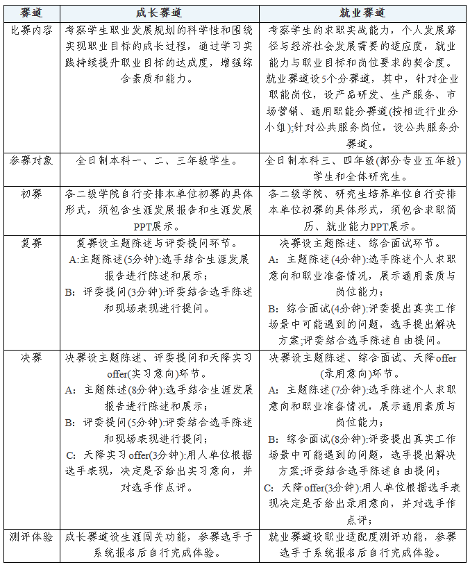 大赛分设成长赛道、就业赛道两个赛道。具体赛道介绍如下: