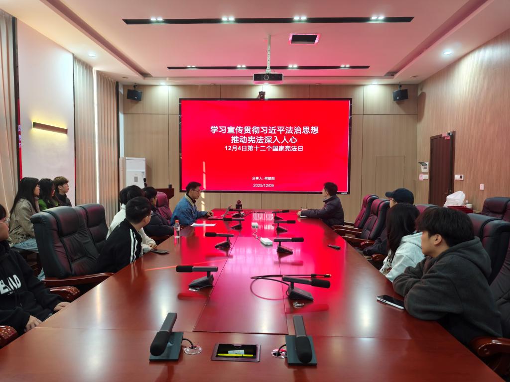 组织部成员何朝阳带领大家学习国家宪法日相关知识。他首先介绍了国家宪法日的设立背景,对宪法作为国家根本法的核心内容进行解读,带领大家学习了习近平法治思想“十二个坚持”的内涵。同时,他结合具体案例,说明了宪法与日常生活的紧密联系,呼吁全体成员自觉尊法学法守法用法,强化法治意识,提升法治素养。
